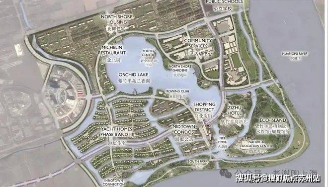 每一排别墅前都有一条渠道,引入水系,可!以!停!游!艇!
