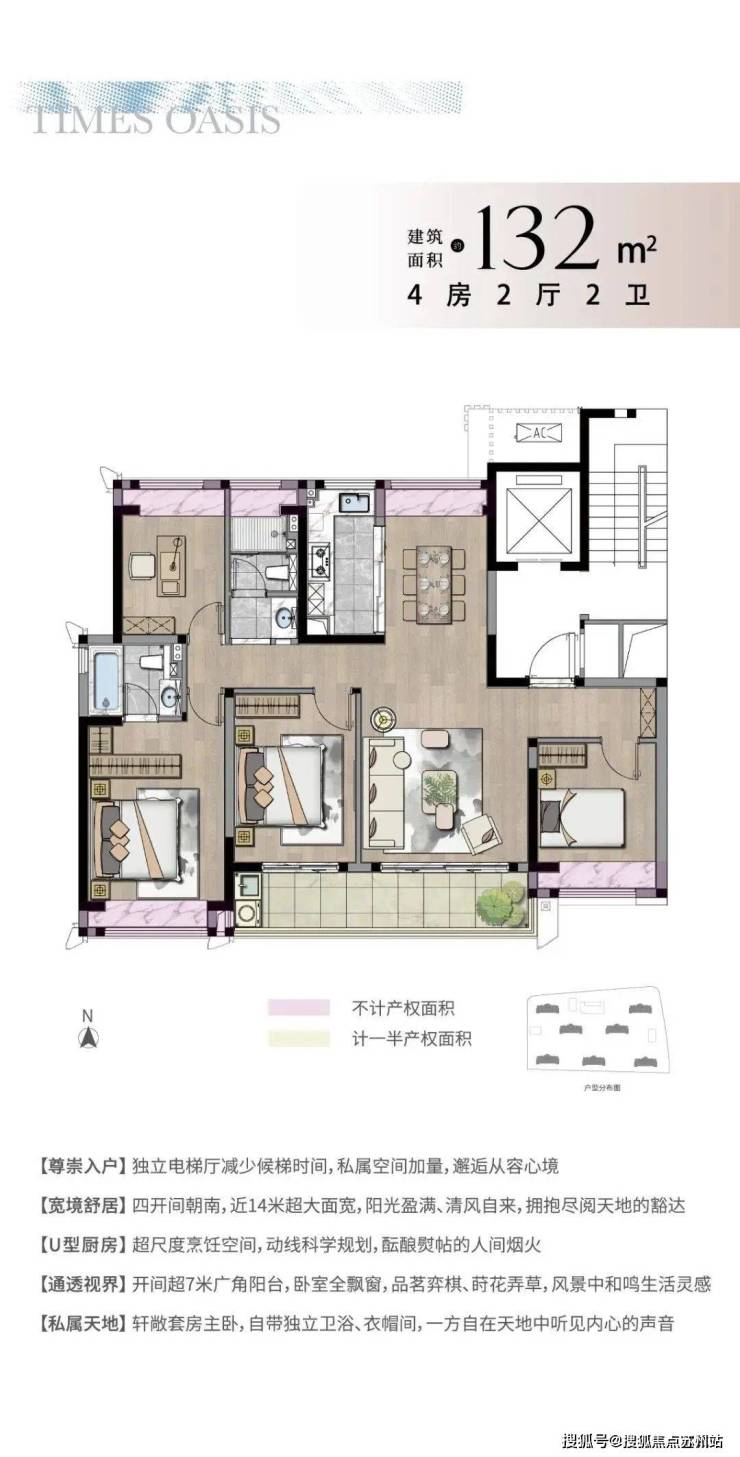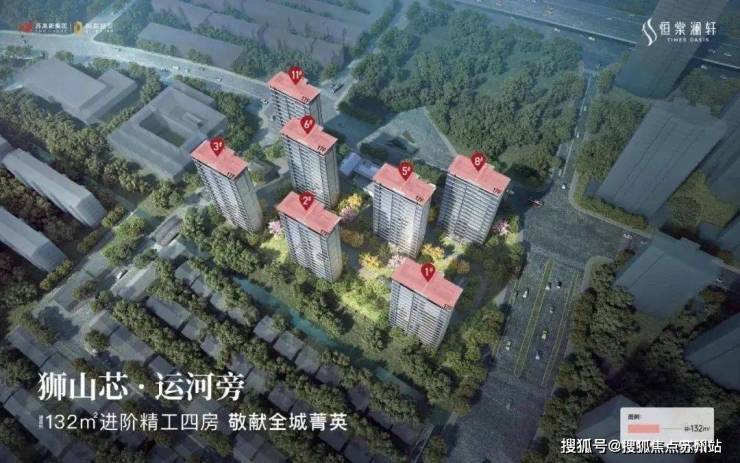 恒棠澜轩是苏高新集团旗下“澜系”高端产品,容积率2.0,稍微有点高。规划7幢17层小高层,户型统一都是132㎡,据说是为了圈层纯粹。