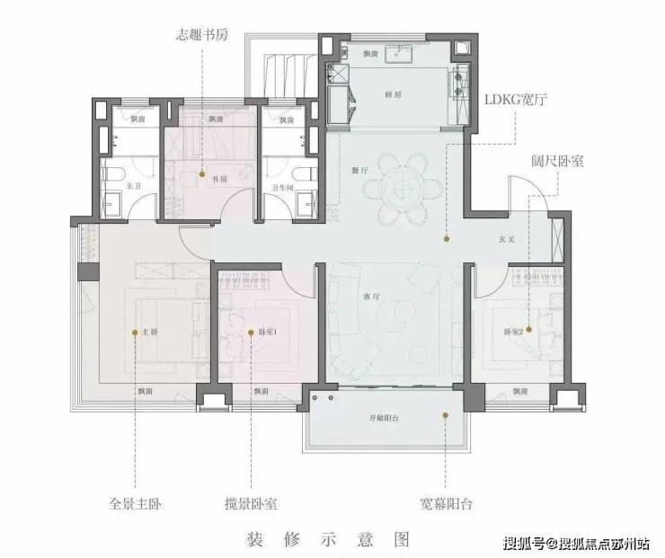 建面约110㎡3房2厅2卫,小编总结了这个户型几个核心亮点: