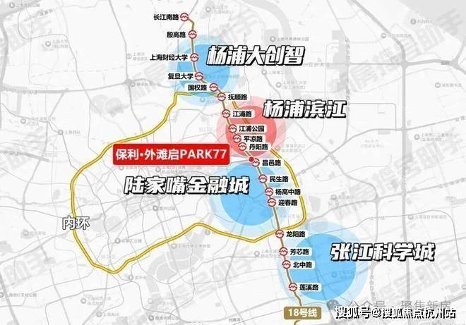 纵向18号线:贯通复旦/同济/财大杨浦大创智国际生态联盟、长阳创谷(小红书、得物总部)、杨浦滨江科创带(美团、B站千亿集群),6站陆家嘴缔造“智识-产业-资本”全链生态。