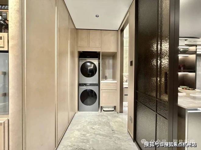 收纳升级:长约3.4米的整墙收纳柜+玄关收纳柜、家政柜配置单独洗涤盆等升级收纳配置!