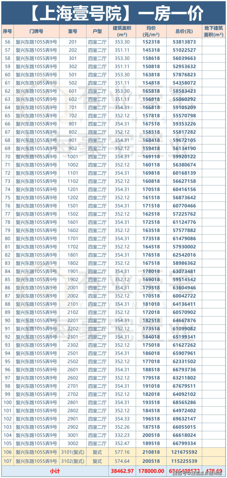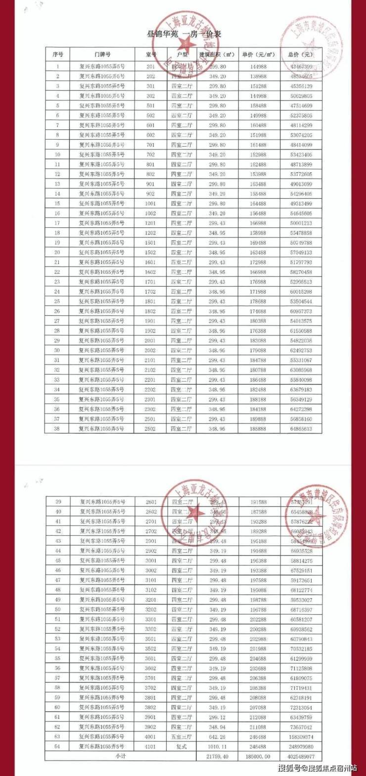 四批次一房一价表