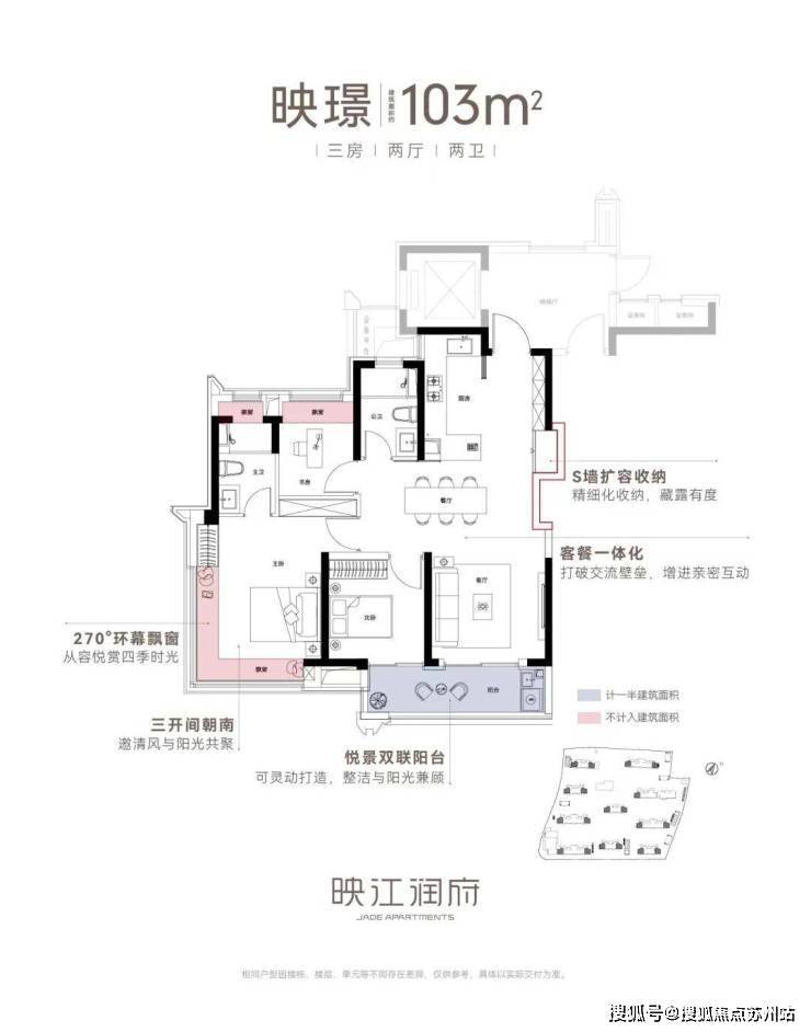 亮点一:270度环幕飘窗,通透主卧套房,对于卧室而言,常规的尺度延扩,不足以称为迭新。映江润府,103边套户型,引入了千万级以上豪宅之中才能够拥有的270度环幕飘窗设计,实现了极致的采光和观景体验。