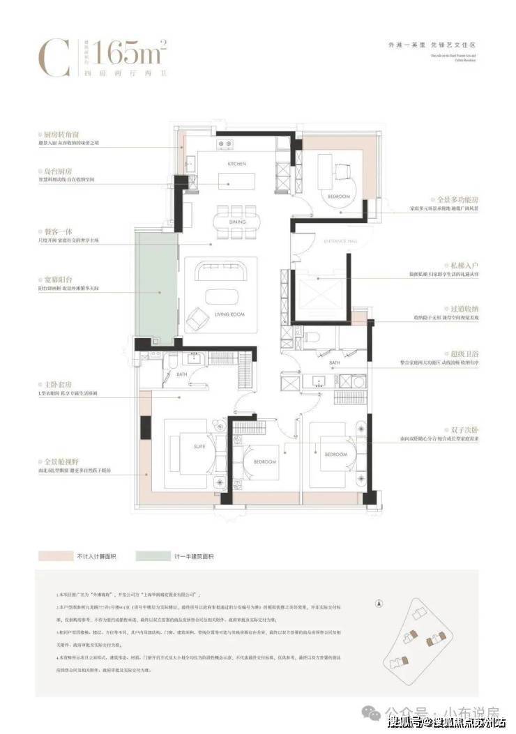 大横厅尺度感奢阔,尊享私梯入户,隐私性满分!三间卧室朝南设计的平权户型,老人、小孩均可享受南向采光;厨房转角窗、主卧套房、北向书房均配置270度转角飘窗,景观视野相当不错!次卫四分离设计,相当人性化~