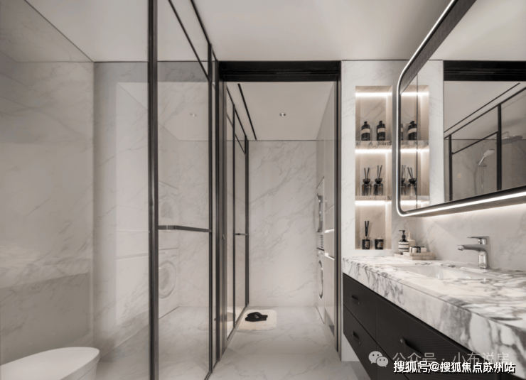 其中客卫空间设计相当惊艳!将洗衣空间融入客卫,做了四分离设计!洗衣空间还有充足收纳空间。