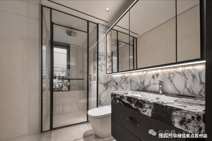 全屋更是配备华为AI智能系统,智能控制家居更省心!卫生间镜柜延伸至马桶上方,实现收纳扩容!
