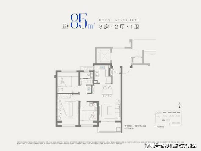 T4 房型:85 ㎡三房一卫(户型方正,全明南北通透,三开间朝南进深短采光好)