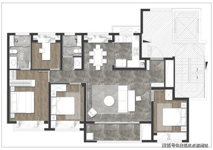 四开间朝南,约5.7米面宽客厅打造南向超大采光面超大观景阳台,兼具开阔的视野和更多发挥余地