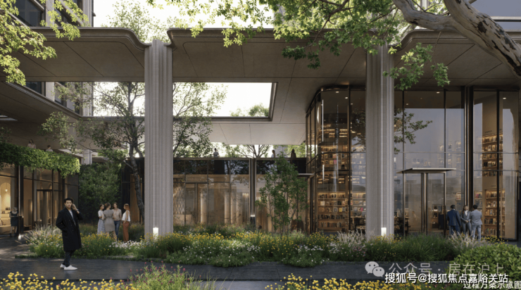 穿过园林,上海最大的约3500㎡下沉水院构成社区的核心灵魂,约13米的高差形成独特的“峡谷绿洲”,将黄浦江的水意象引入社区,中央平静水面与四周的会客舱、茶室、游泳馆形成呼应。