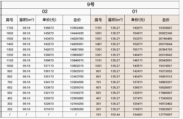最新一房一价表: