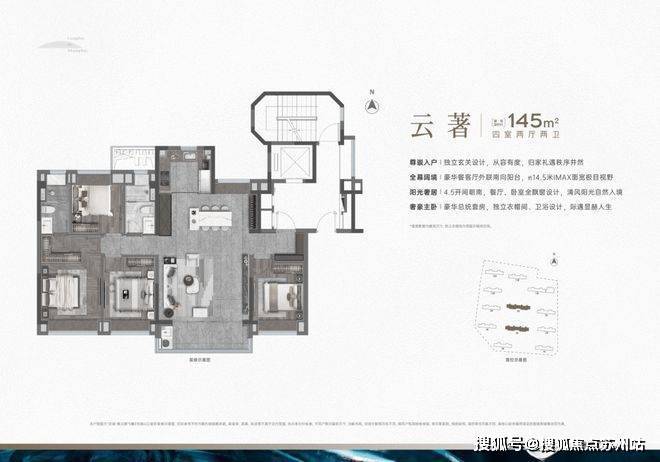 对人居的定位,不再局限于生存与气息。更追求生活的感受与品位,当代舒居的向往不断进取,大“室”所趋,成为现代人居的理想之境,约145㎡户型,LDK客餐厅直连约4.9米大面宽南向阳台,无界尺度纵揽惬意;豪华主卧套,奢配飘窗、独卫、衣帽间,犒赏自在时光;为每一位家人定制私域,生活进阶的N种可能,专为高净值人群打造高奢无界大宅,革新高定生活。