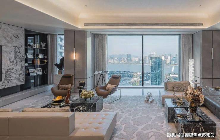 转身冲一杯咖啡,视线便能毫无阻滞地从客厅芬迪白大理石背景墙,滑向窗外钱塘江水的画卷。