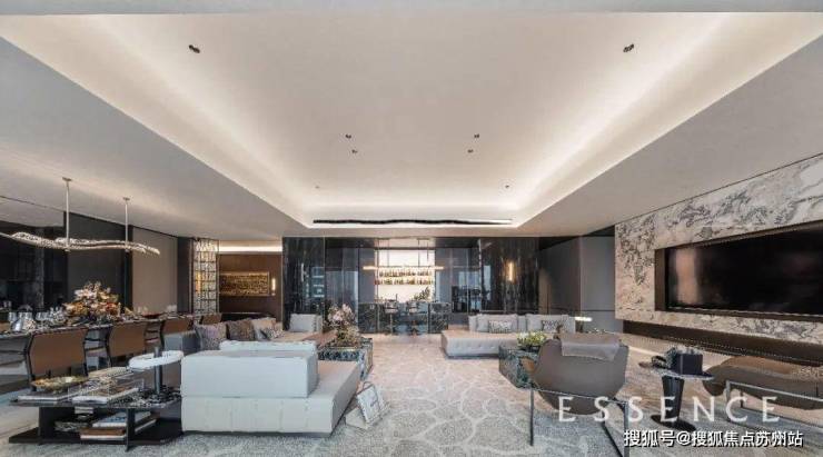 从立面美学,到内部空间,兆丰ESSENCE将大平层的产品力发挥到极致,尤其在这套由东方润园、绿城玫瑰园的同款设计师叶飞设计的建面约560方展示区中展现得淋漓尽致。