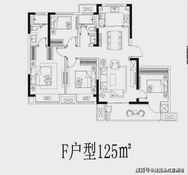 120平4-2-2,总价240万-250万3+1房,九宫格格局,三叶草户型,双阳台,适合人口较多的入门改善客户