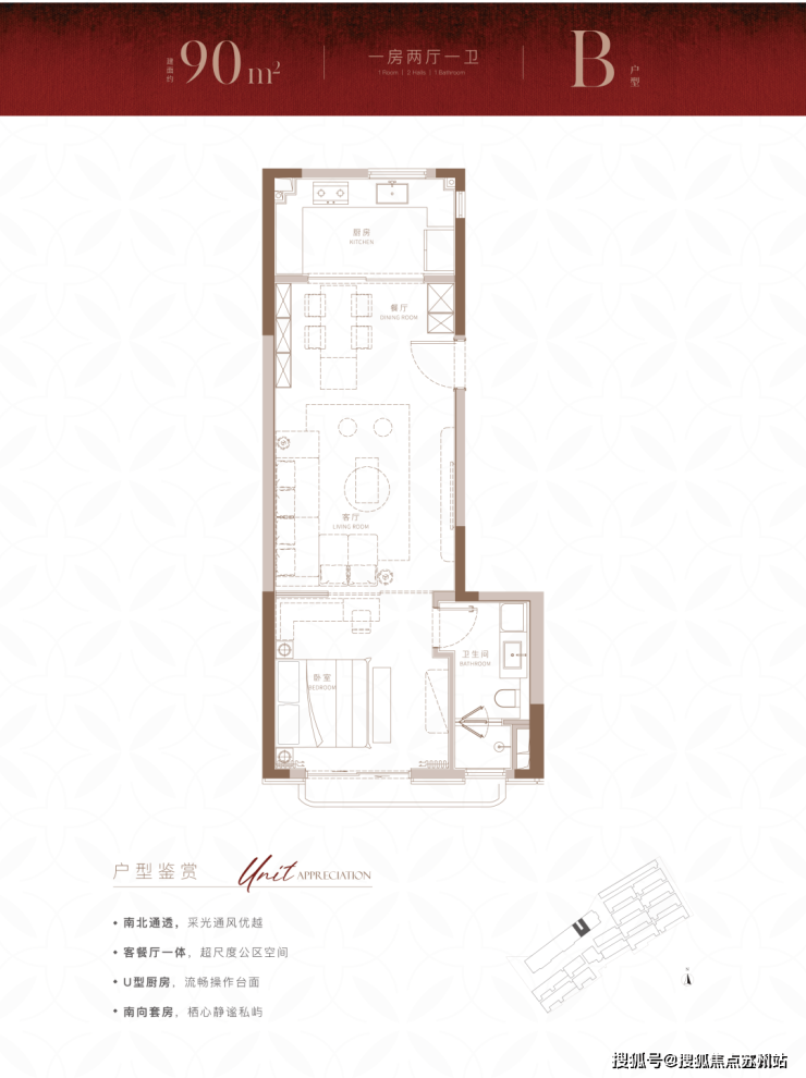 建面约90m²尊享1房户型,在100m²的基础上,进一步降低总价门槛的同时,也带来了设计上针对实用性的小巧思。