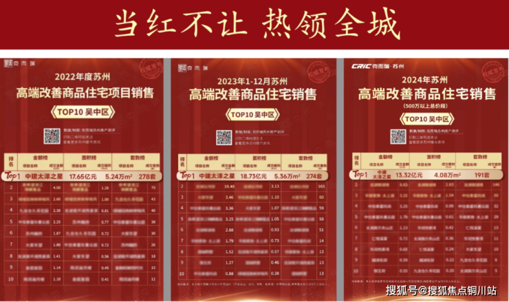 中建·太泽之星|阅湖&御湖,作为吴中人气红盘TOP1,蝉联2022-2024年度吴中区高端改善商品住宅销售三冠王(总价段500万以上),荣膺2024年度苏州市区住宅销售金额面积双榜单前五,荣膺2024年度吴中太湖新城住宅销售金额榜TOP1!