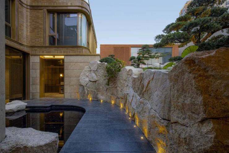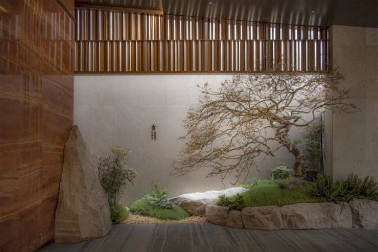 越秀外滩樾的公区庭院非常精致,其精心打造充满禅意的山水庭院。