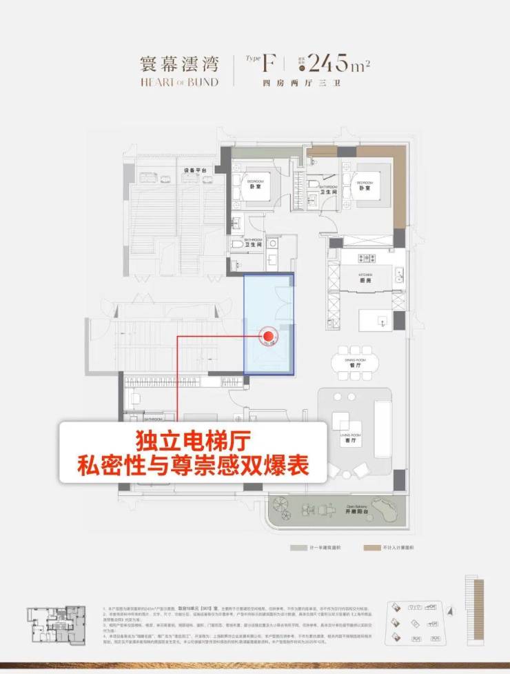 我们具体来看建面245㎡4房户型: