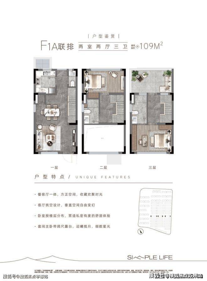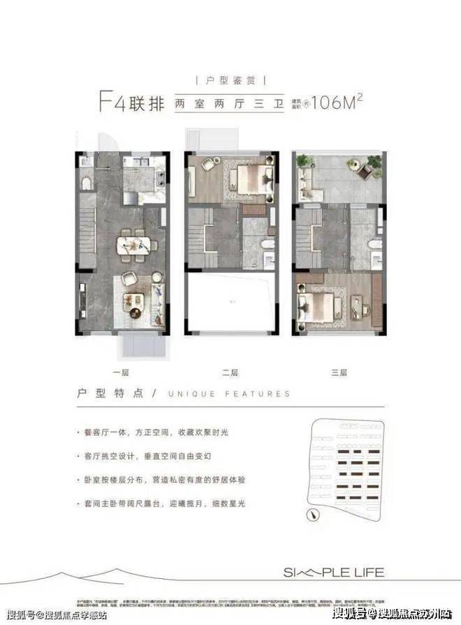 项目合计47幢楼,其中洋房12幢554套,联排33幢301套,项目整体分两批次推出,总计855套。采用人车分流,即保证社区整体设计的美观,又保证业主的安全性,车位有920个,做到1:1的比例。