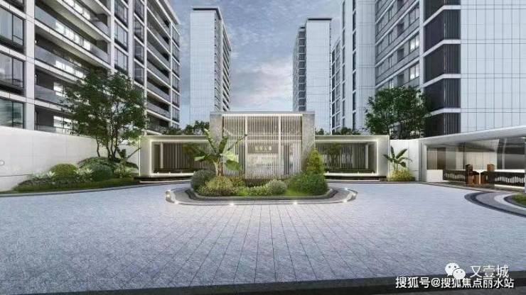 小区体量不大,但做了两个主入口:一个高端酒店风的车行路口,一个业主步行出入的酒店大堂建筑形态.