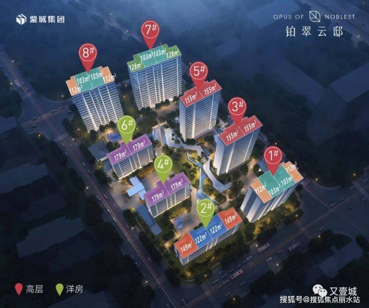 面积:高层103-155㎡(三居/四居),洋房122-179㎡(三居/五居)