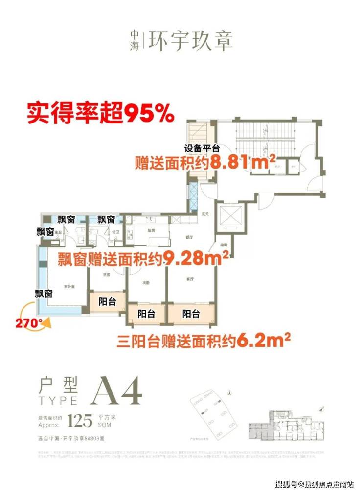 环宇玖章建面约125㎡户型实得率超95%,而周边次新实得率约80%,项目实得率足足高出约15%,摊算到实际使用面积,相当于项目单价再打“85折”。