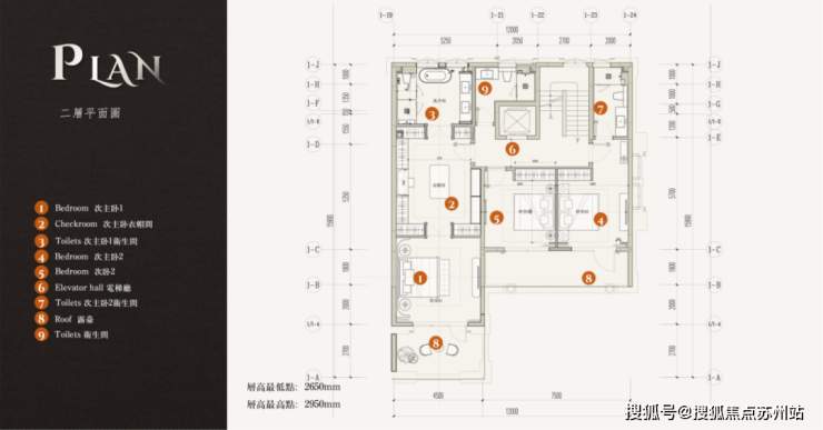 二层类三套房设计,豪华次主卧,带超大衣帽间。