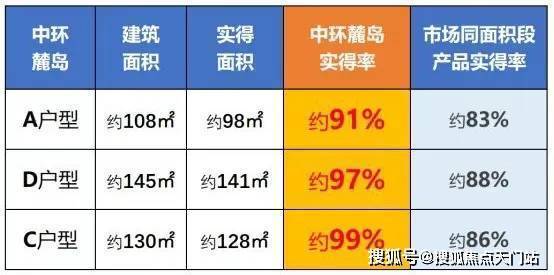 并且,每个户型的实得率都比现有的新房都高出了约8%-10%,具体如下: