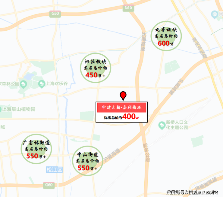 九亭板块新房供应少,门槛价也要600万级,泗泾板块上车总价要450万起,且容积率高于1.1,后续短时间内没有新的宅地,松江新城板块,新房联动价最高6.05w/平。