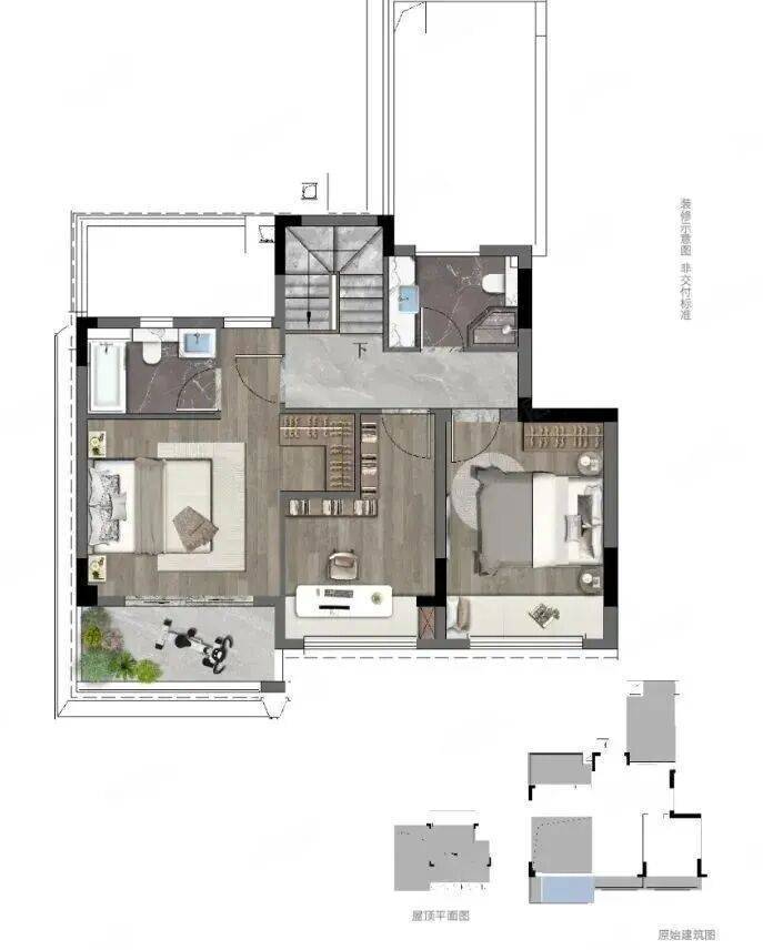 上叠(118–123㎡):享270°观景阳台+屋顶花园,适合年轻家庭或投资出租