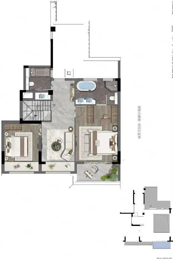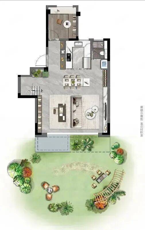 下叠(168㎡):赠送40–300㎡私家庭院+约70㎡地下室,可改造为家庭影院、茶室或民宿,三代同堂首选