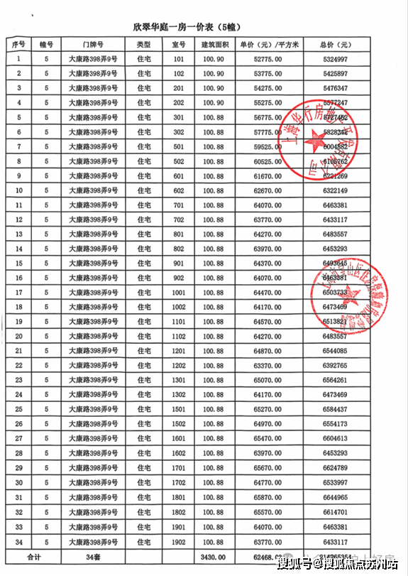 大华公园柏翠项目一房一价表▼