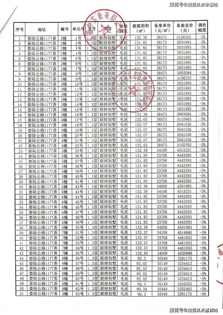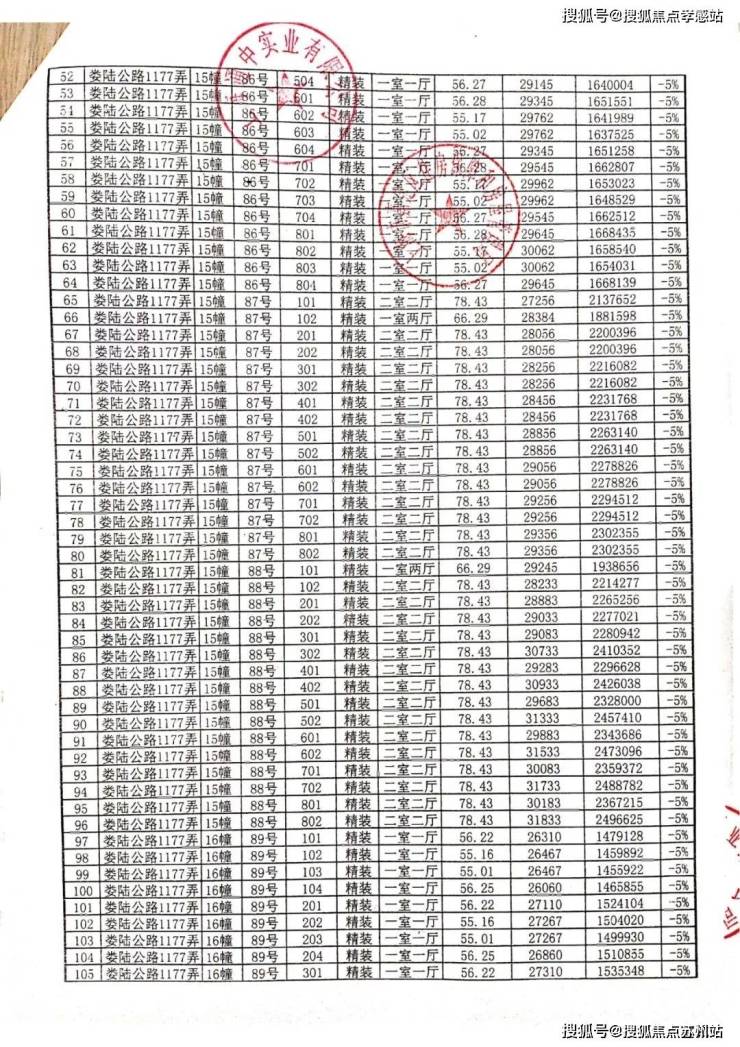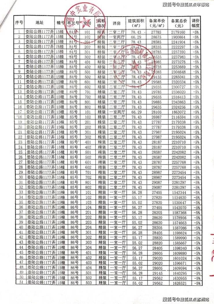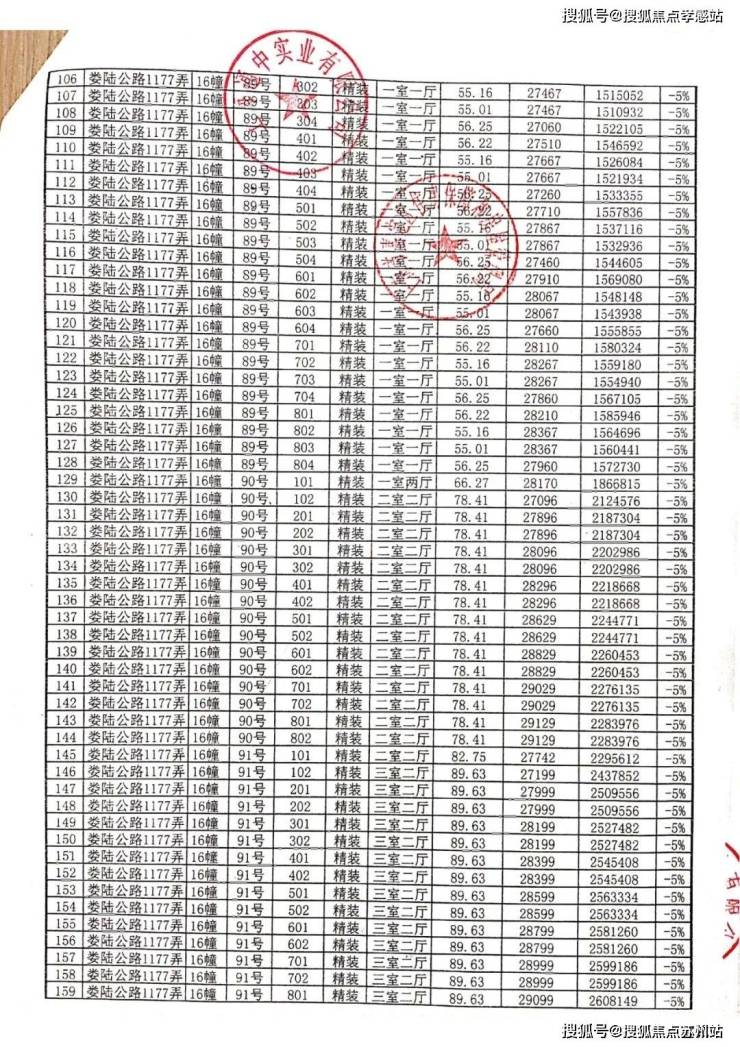 一房一价表: