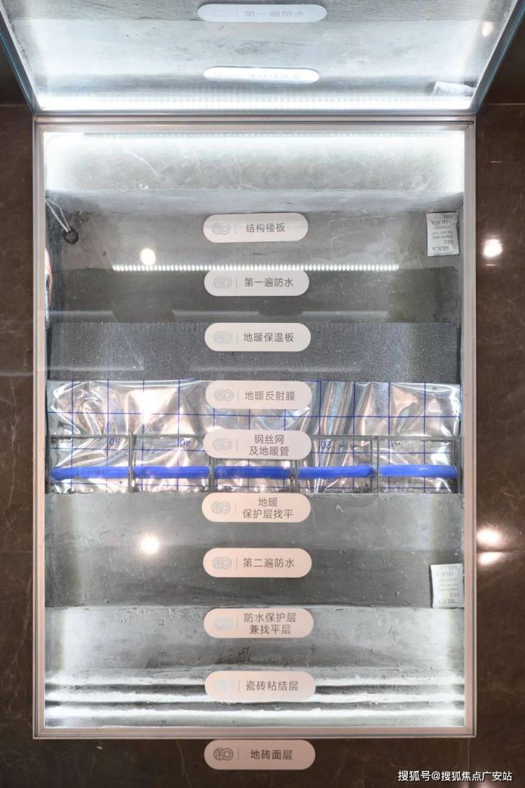 比如防水的步骤,从结构楼板到一遍防水、保温层、地坪反射膜、地管铺设、地暖保护层找平、二次防水、保护层找平,再到地砖面层,每一道步骤,都能看得清清楚楚。苏州路劲君和居售楼处电话☎:400-8828-814(售楼处预约看房热线)