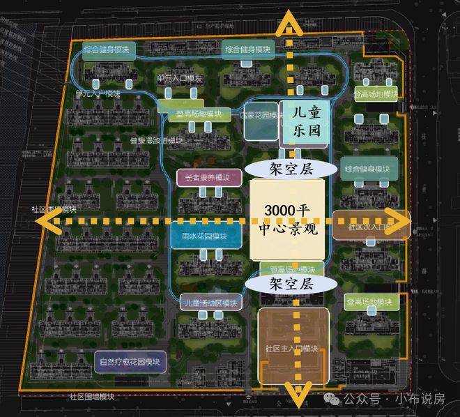难以置信,项目竟舍弃社区中心的楼王位置,空出一栋楼,只为打造舒适开阔的生态核心。如此“血本”,换来了一个约3000平的超大尺度空间,做成了多功能中央景观。