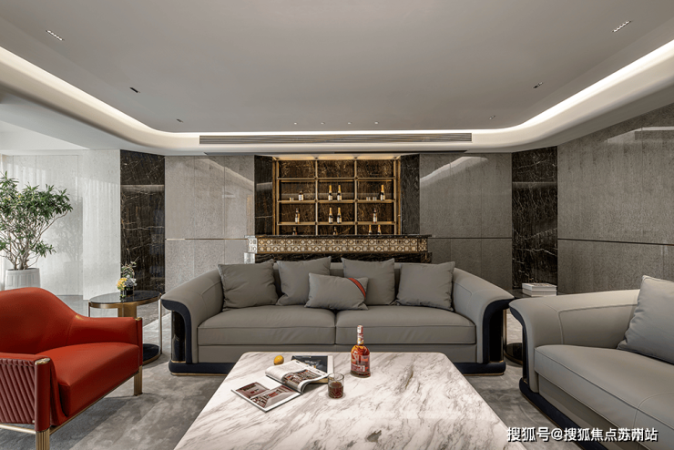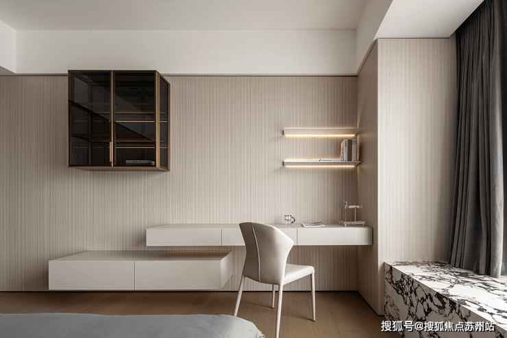 客厅拥有层次分明的划分,运用一体化布局构造平层独特视线。窗口旁布置饮茶室,融入淡淡禅意与日常展开微妙的共鸣。