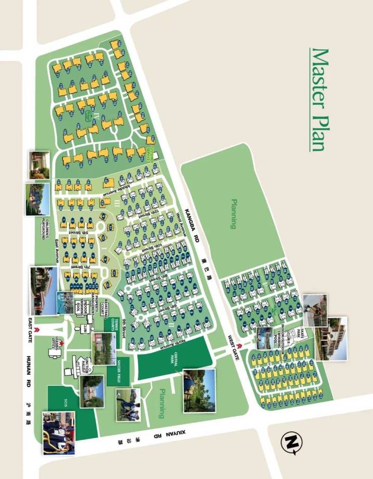 一期:共30栋别墅(只租不售,其中8套联体别墅),2000年全部落成;