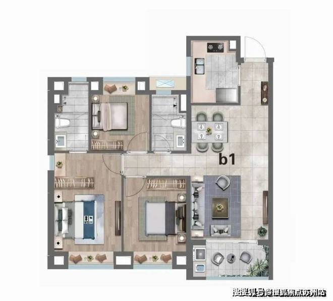 该户型附加空间很足,四口之家或是三代同堂都有非常好的居住体验。