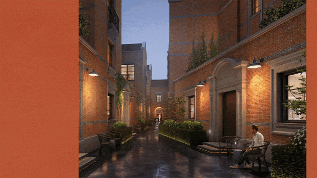 外立面采用保加利亚进口沉香米黄石材与巴西奢石波多尔红,复刻原汁原味的红陶砖镶嵌工艺,巷道尺度亲密而不失格调,重现海派烟火气与历史肌理。