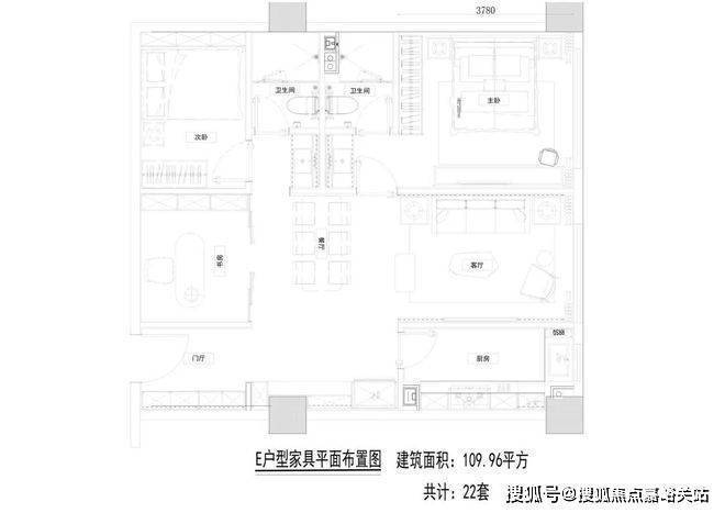 【E户型】建筑面积109㎡ 3房2厅2卫(22套)-主力户型
