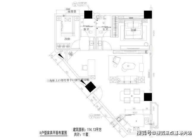 【D户型】建筑面积114㎡ 2房2厅1卫(11套)