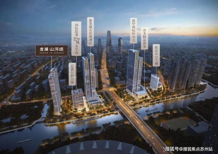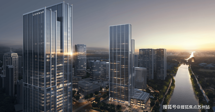 集5A超甲级写字楼、苏州首个康莱德酒店、天际顶奢大平层、COE总裁行政公寓、滨水商业街,多种业态于一身,承载苏州塔尖的生活向往。