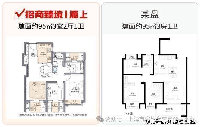 但招商臻境源上的建面约95㎡3房却截然不同,TA凭借着3阳台的设计,给到客户一个真正的三房户型: