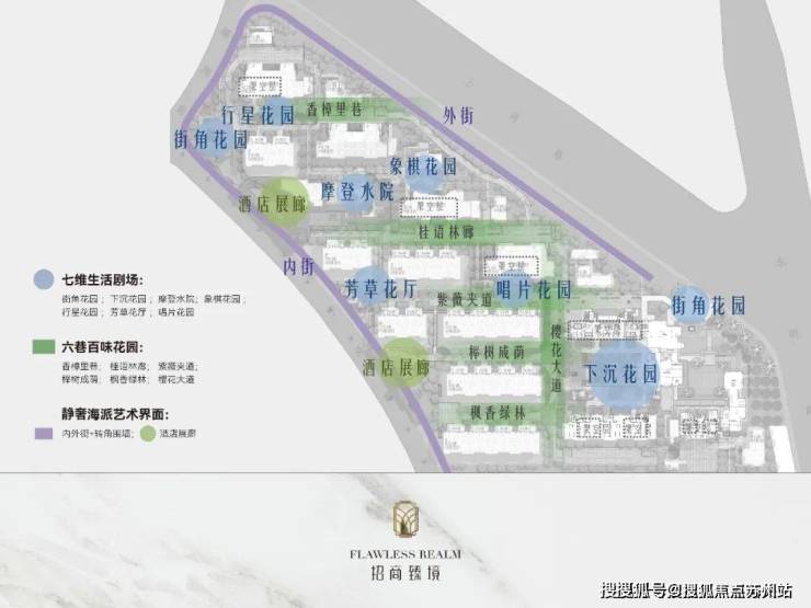 【招商臻境】精心规划了七维生活剧场,包括: 街角花园、摩登水院、下沉花园等七重生活场景,营造四季分明、美景如画的精致水岸归家之路。