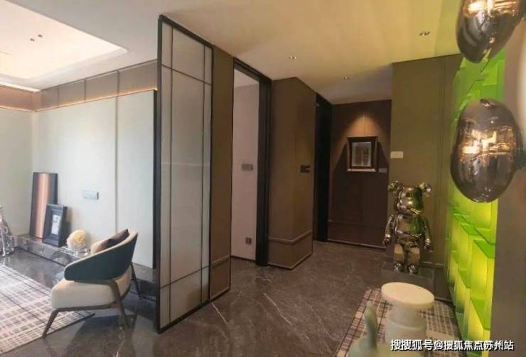 地上精装大堂的设计同样出彩, 地面的石材拼花造型与墙面的石材背景相得益彰,将静奢海派的艺术风格展现得淋漓尽致,为业主带来无与伦比的视觉盛宴。