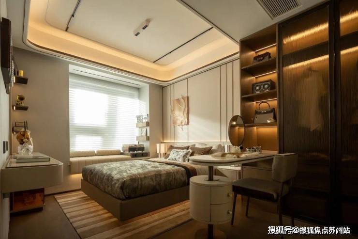 比如说,圆弧形吊顶让空间更具柔和美感,金属线条提升空间的层次感,细节之处精致考究。
