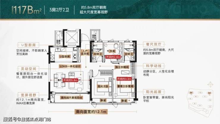LDKB通透格局,U型厨房,畅享宽敞餐厨空间;