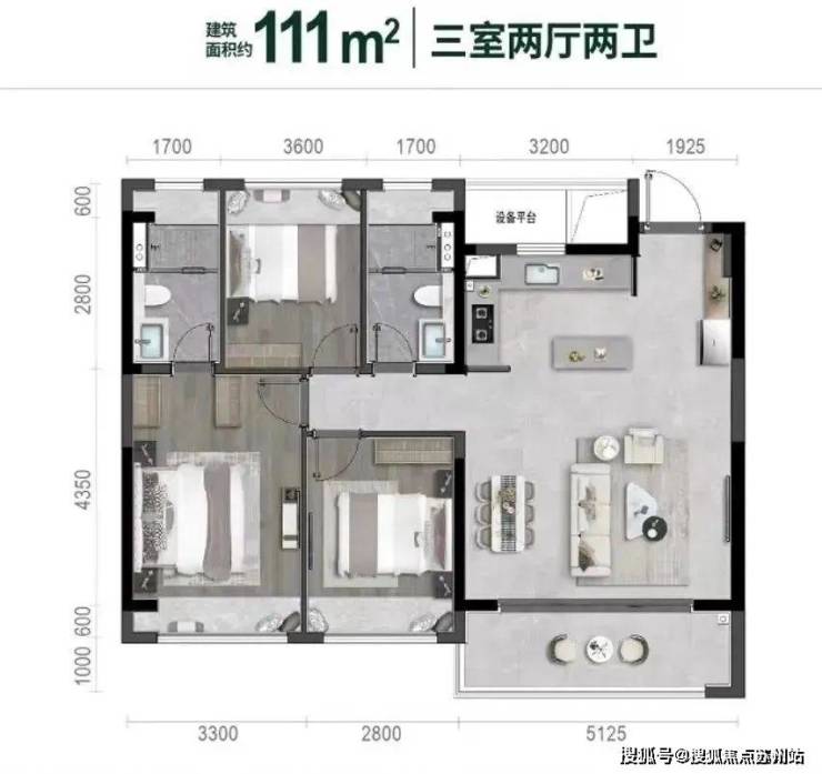户型配置:高层建面约101-111㎡;洋房143㎡
