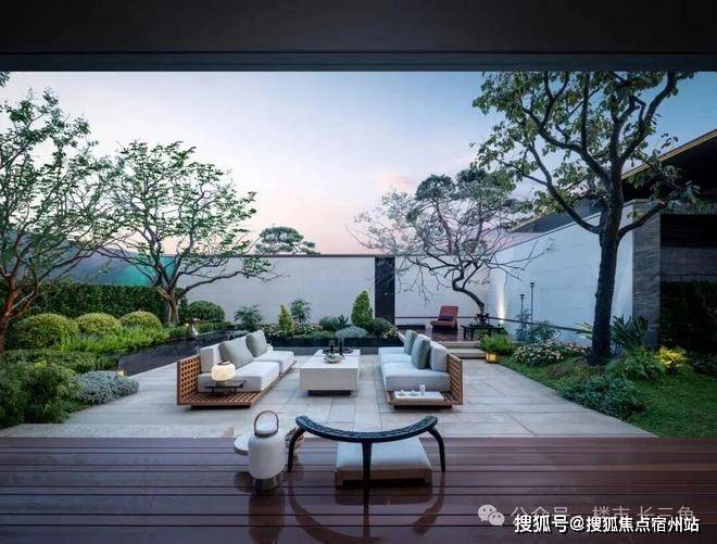 庭院的选材也极具讲究:太行山金景石堆叠成小山丘,岭南古桩铁冬青与中华原生乌桕树移栽而来,蕴含“聚财守业”的美好寓意.细节之处,经得起推敲,让人越看越有味道.