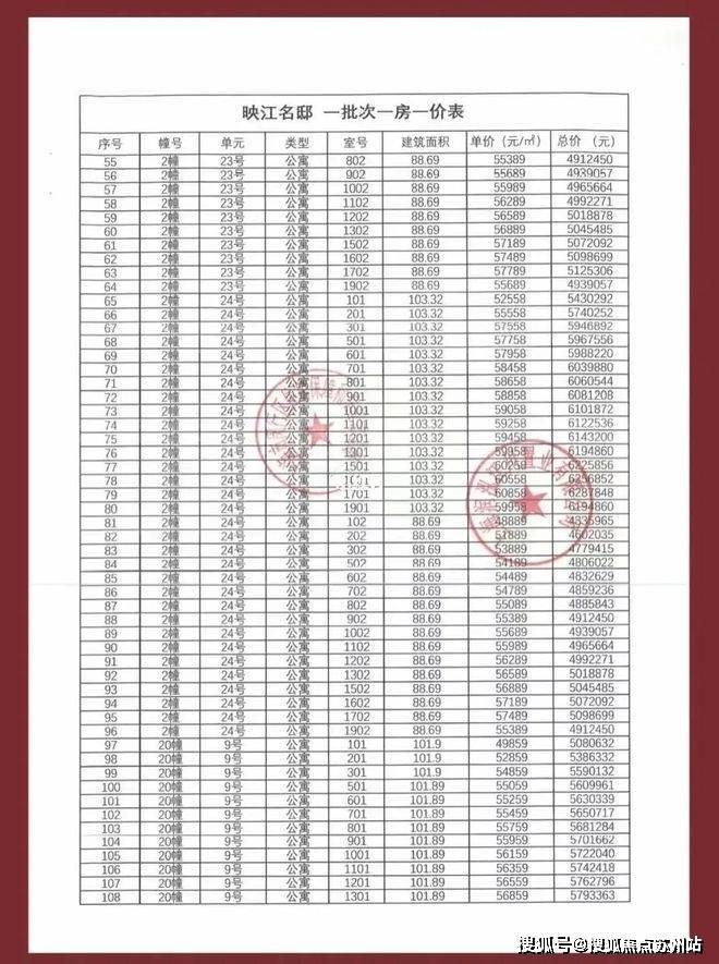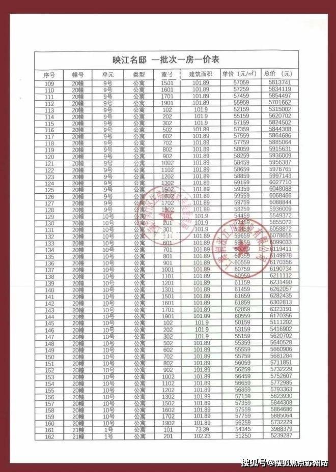 一房一价表如下: